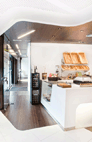 Food-catering shop – attending desk: continuous (accessible) with a hole for bread desserts exposition.