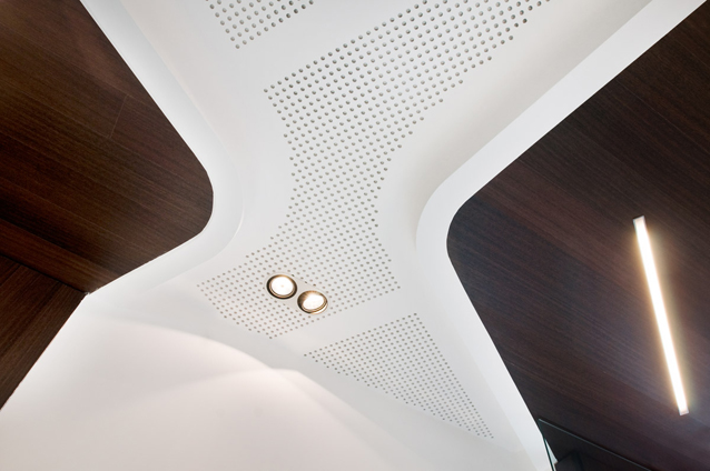 The lights accentuate the continuity of spaces thanks to the movement and changes of directions of the materials.