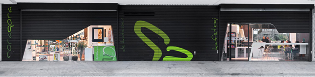 The local has a rectangular shape with two limiting walls. The shortest separates from the collective housing entrance and the other with a video club and the two facades, while the largests ones are all the length to the public space.