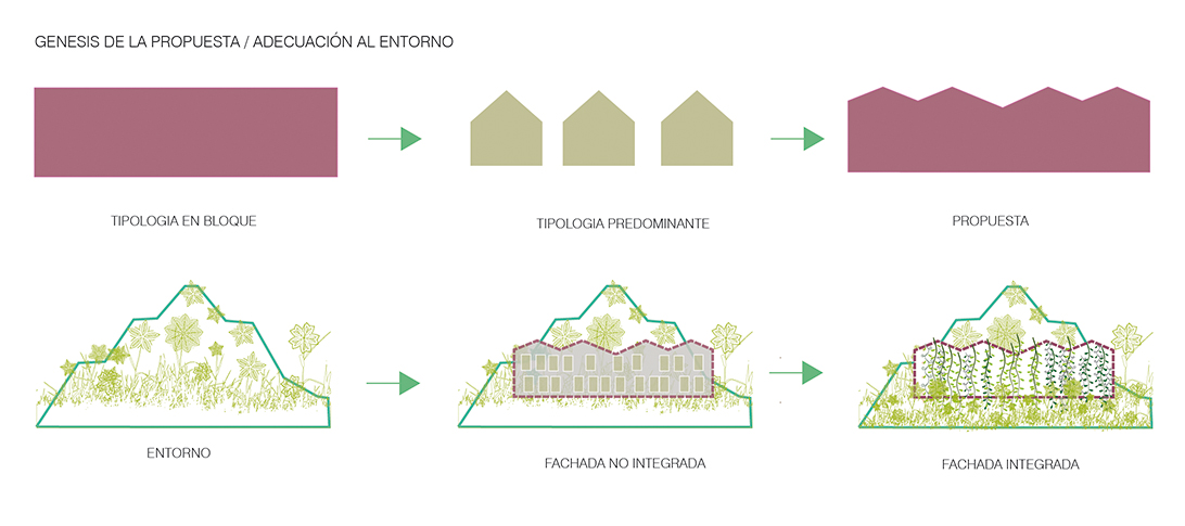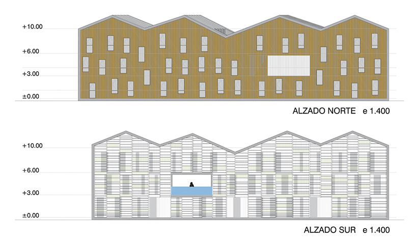 Zonas de estar al Sur / Fachadas con aislamento continuo sin puentes térmicos / Ventilación natural, cruzada / Caldera de biomasa centralizada y regulciónes individuales.