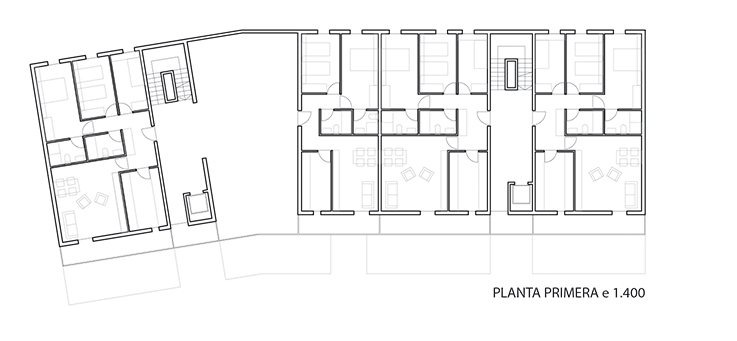 Ahorro económico en costes materiales al distribuir el acceso de 12 viviendas en dos núcleos de comunicaciones principales y acceso a 2 viviendas en planta baja.