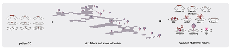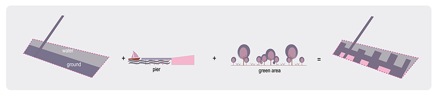 Placed between the blurred line of the urban activity and the waterfront landscape, we need to develop this space as a natural transition where the city and the water will join becoming a unique place gathering of both inside it.