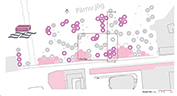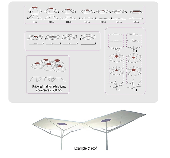 The polygonal shape of this pattern makes an easy adaptation not only of the occupied space but also of the volume. Its different extrusions combined all around, can creates the exposition space, new seats, different topographies, canopy areas and accessible circulation from every place to another.