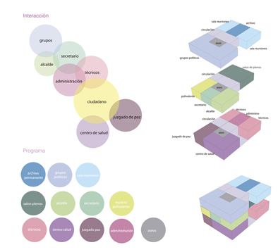 El confort espacial es especialmente importante en edificaciones de carácter administrativo. Su distribución marcará definitivamente la eficiencia y la productividad que l ciudadanía pide de sus instituciones. Un adecuada distribución jerárquica de estos usos es fundamental. Para ello es conveniente una distribución del programa en usos públicos, semipúblicos o de acceso público ocasional y de uso interno y privado.