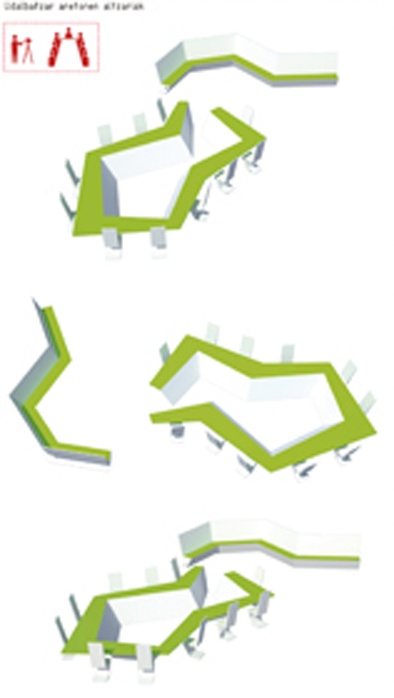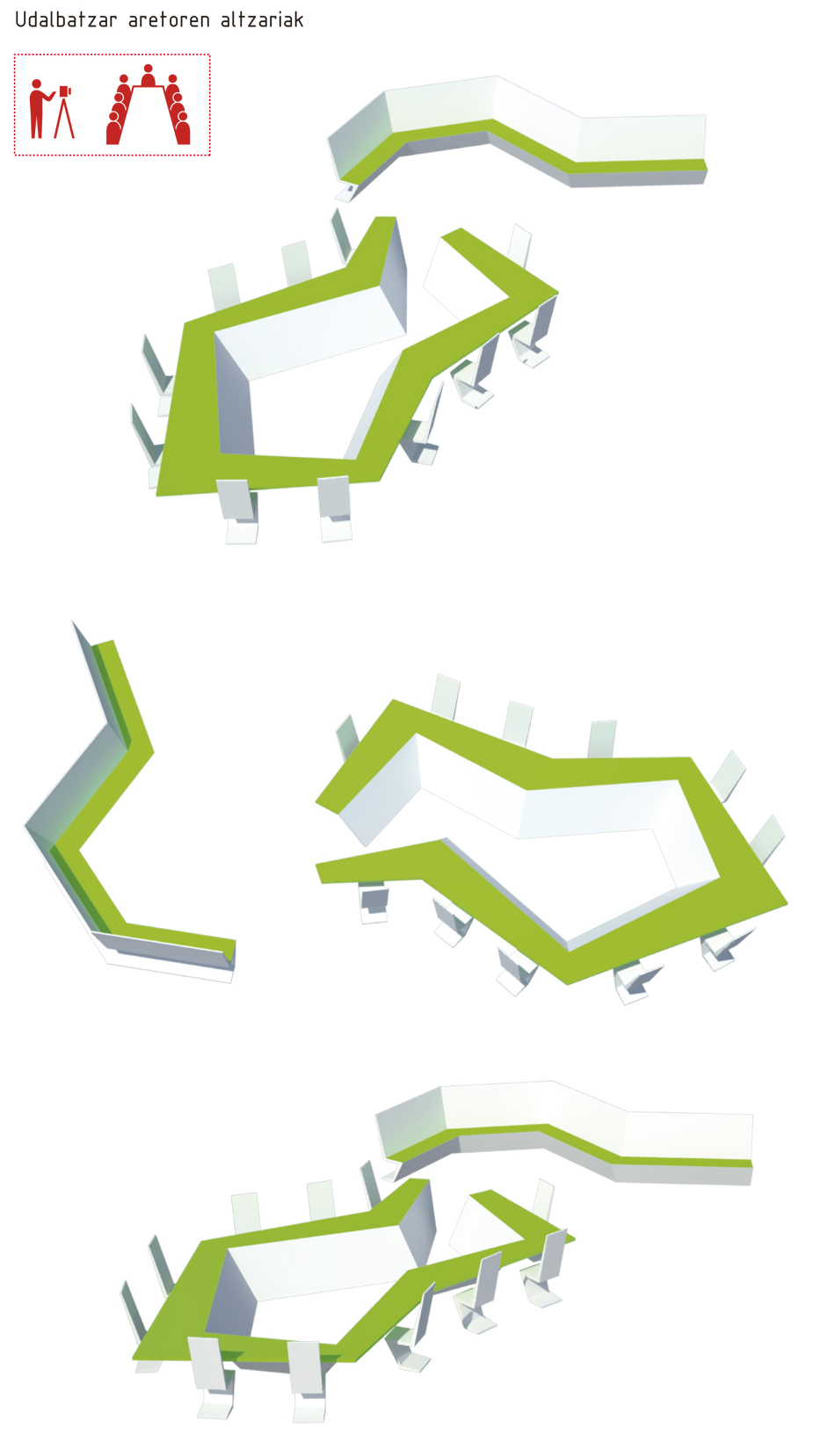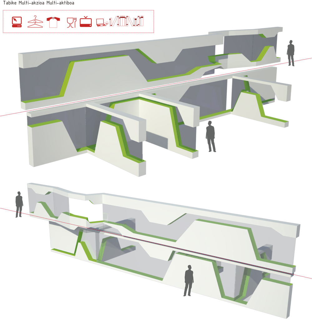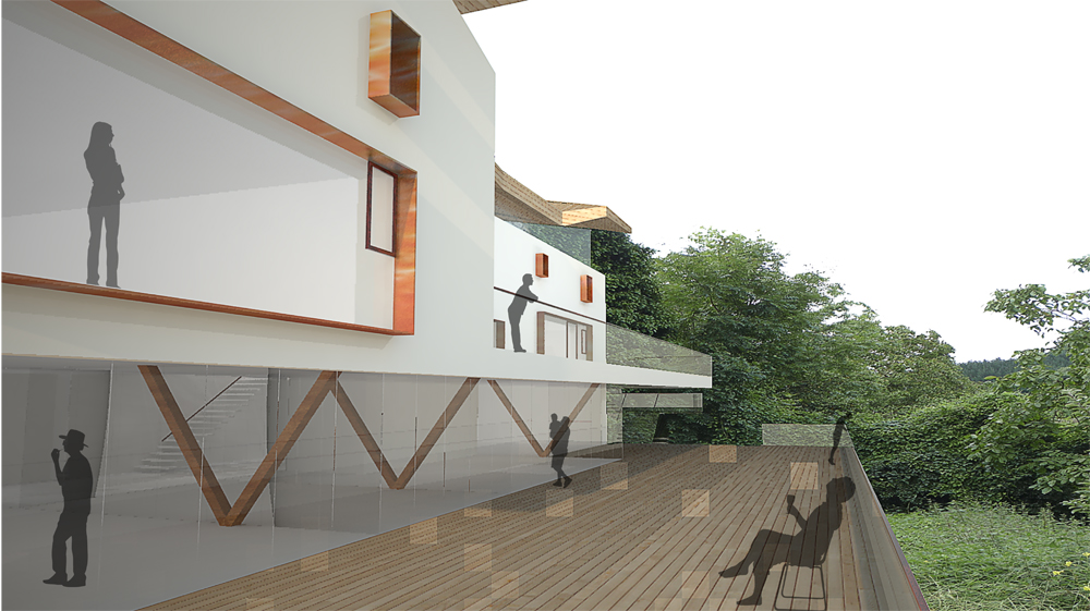 Refuerzo de la composición de huecos mediante cajones de acero cortén.