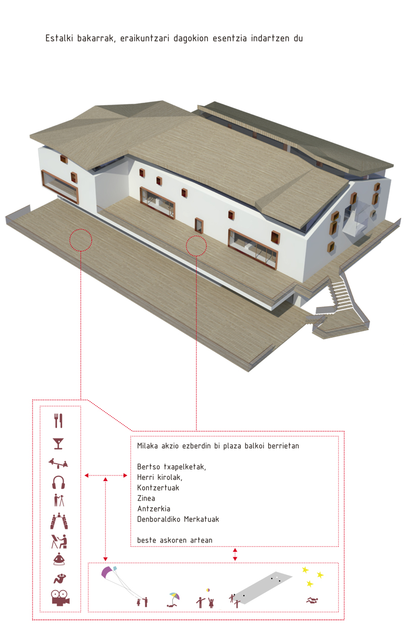 Se mantienen las fachadas hacia la plaza, intactas. Se coloca una nueva