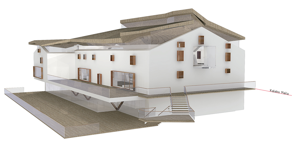 construido. Por ello, el antiguo edificio queda flotando sobre la ladera